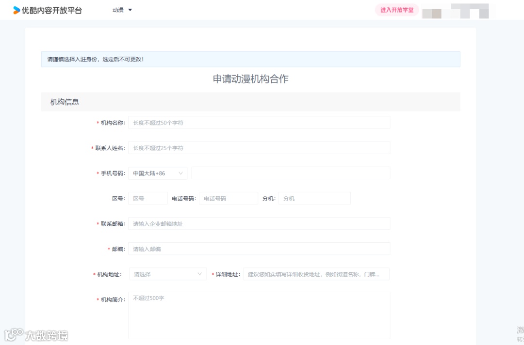 ➢ 按照页面提示填写机构信息,等待频道商务对接,5个工作日内反馈审核。