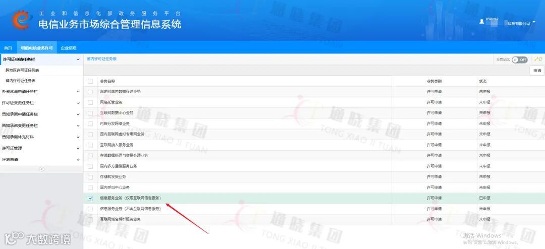 登录工信部-电信业务市场综合管理信息系统