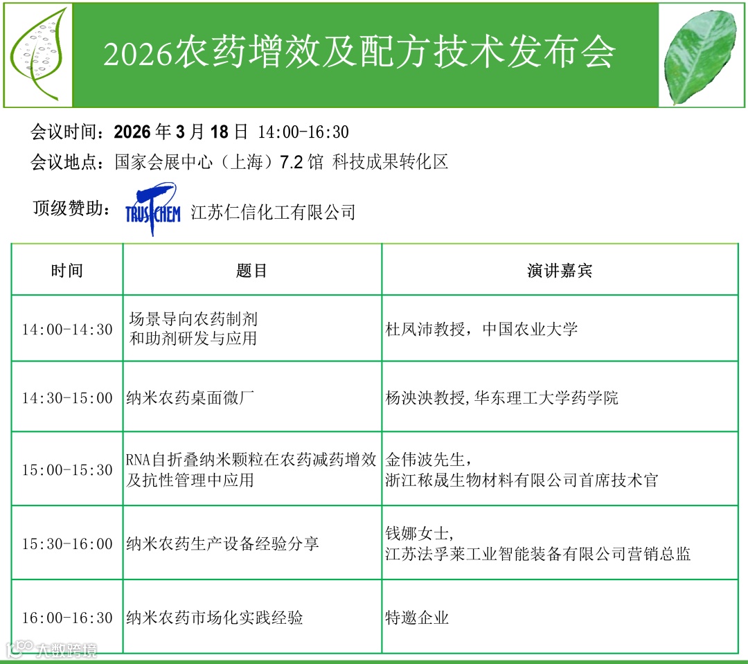 农药增效及配方技术是 CropProtection2026 重点展品,已有海内外多国 80 多家农药助剂企业确认参展,将向全球 130 多个国家和地区的 2 万余家企业、超 10 万人次行业人士展示各类助剂产品,不同农药,不同剂型的优选配方,农药纳米化技术,产品增效方案、共同推动农药制剂技术的创新和发展,为农药的增效减量添砖加瓦。