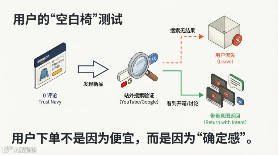 想一想,当一个消费者在亚马逊看到一个陌生产品,他下一步通常会做什么?