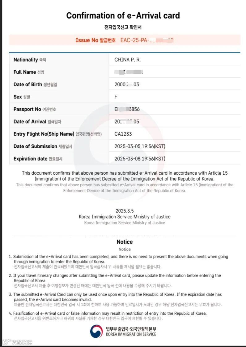 即可获得韩国电子入境卡