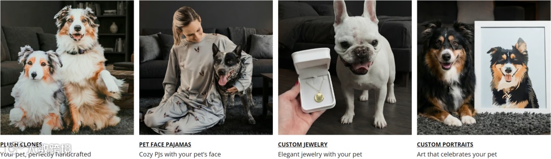 Cuddle Clones并未将“定制”局限在单一产品形态,而是围绕“宠物情感纪念”这一核心,延展出毛绒玩具、睡衣、首饰、肖像画等多个品类,并在核心产品中反复强调“手工打造”“捕捉宠物独特特征”等细节。
