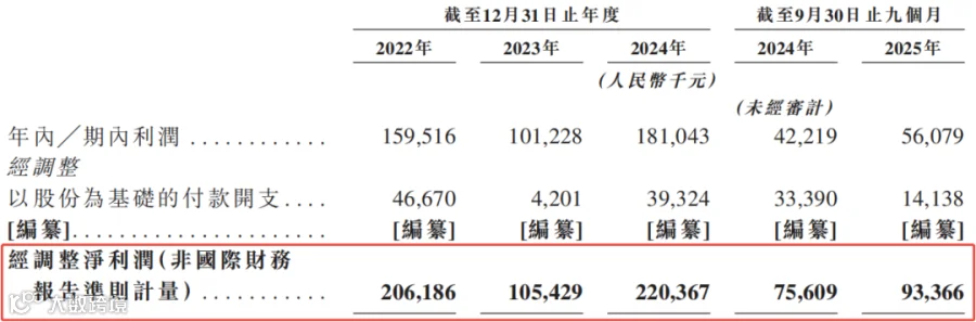 在剔除不会引起现金变动的项目后,从2022年至2024年,公司的经调整利润分别为2.0亿元、1.0亿元及2.2亿元。2025年前三季度的经调整净利润为9336万元,同比增长23.5%。