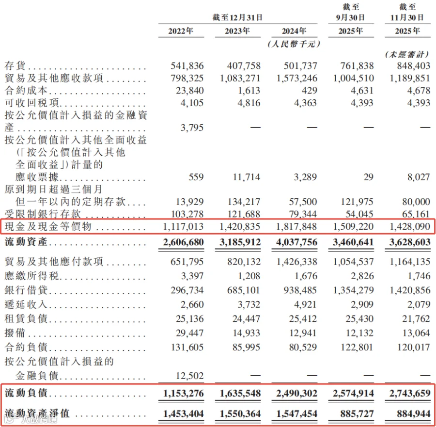 在营运资本方面,公司的现金储备相当充裕,截至2025年11月30日,现金及其等价物为14.3亿元。同时,公司的负债水平较低,截至同期,流动负债总额为27.4亿元,流动资产净值为8.8亿元。