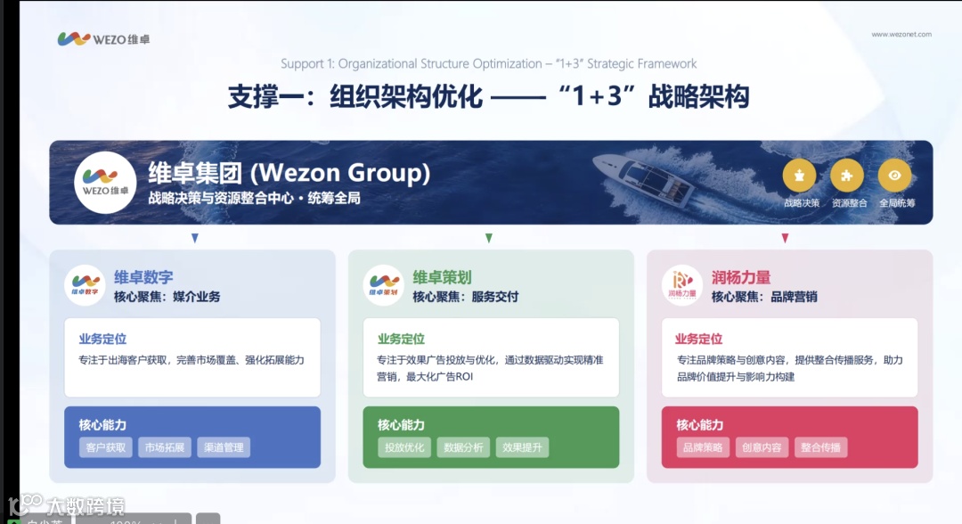 目前,“WeMedia媒介管家”“WezoGeser维绘工坊”“Wehub数据仓”“Adsmentat海告通”等产品已完成上线与迭代,并实现账户与数据互通,持续响应出海客户多元化需求。