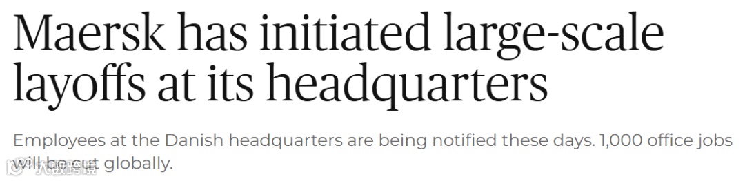 马士基已于2月初宣布新一轮裁员计划,拟削减约1000个办公室岗位,占其全球办公室岗位总数的15%,重点覆盖丹麦总部及各地区职能部门。
