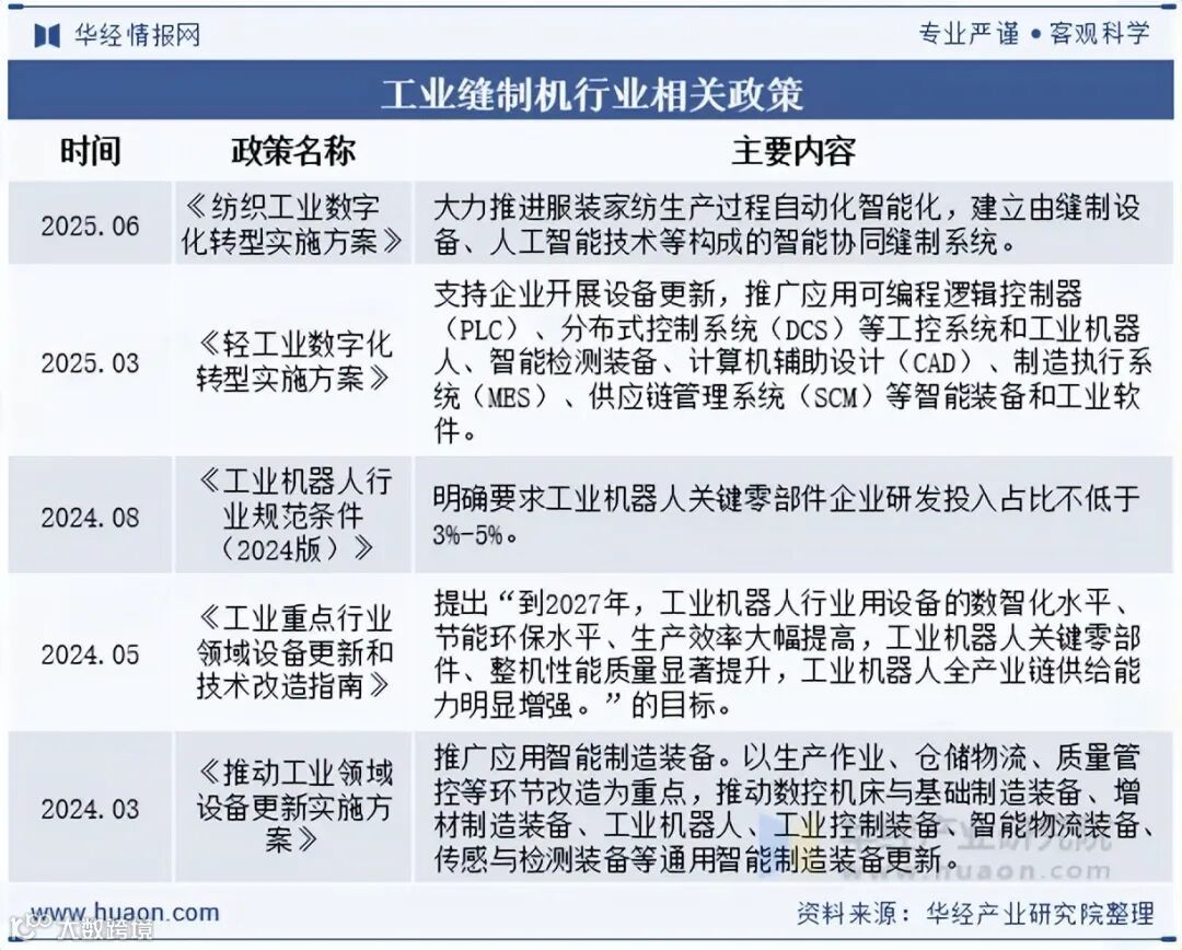 国家陆续出台《纺织工业数字化转型实施方案》《轻工业数字化转型实施方案》《工业重点行业领域设备更新和技术改造指南》等政策,为行业稳定增长提供有力支撑,并明确绿色低碳与智能化升级的战略方向。