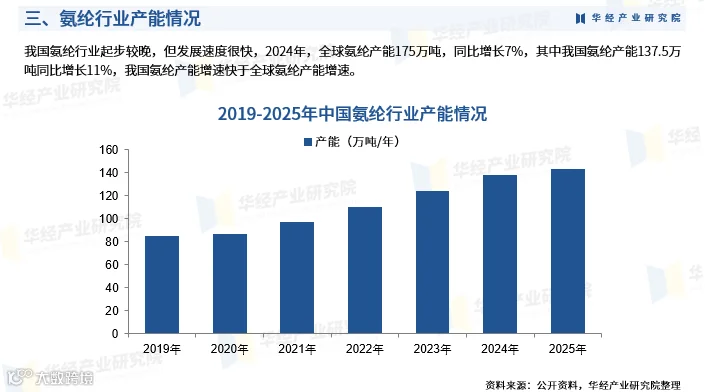 2024年全球氨纶产能达175万吨,同比增长7%;中国氨纶产能137.5万吨,同比增长11%,增速高于全球平均水平。