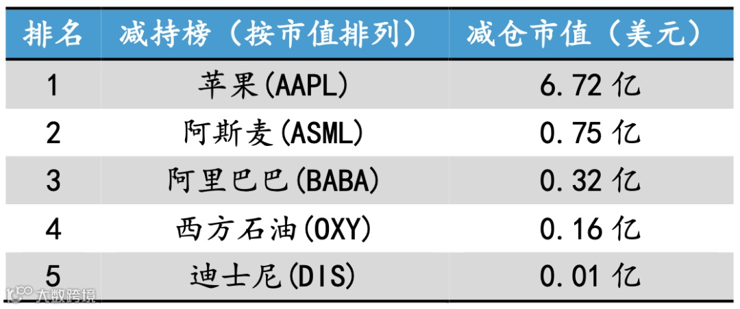 在减持方面,段永平本季度对苹果(AAPL)进行了6.72亿美元的减持。此外,阿斯麦(ASML)、阿里巴巴(BABA)和西方石油(OXY)也出现在减持名单中。