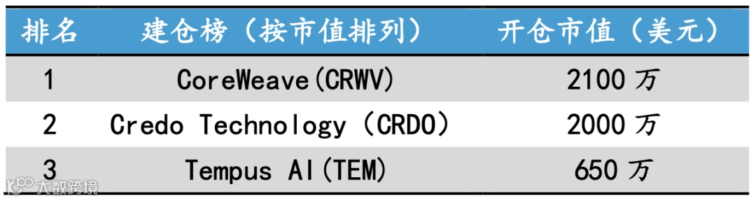 本季度段永平的三个新面孔极具看点:CoreWeave(CRWV)、Credo Technology(CRDO)以及Tempus AI(TEM)。虽然开仓市值均在千万美元级别,属于“观察仓”,但方向感极强。