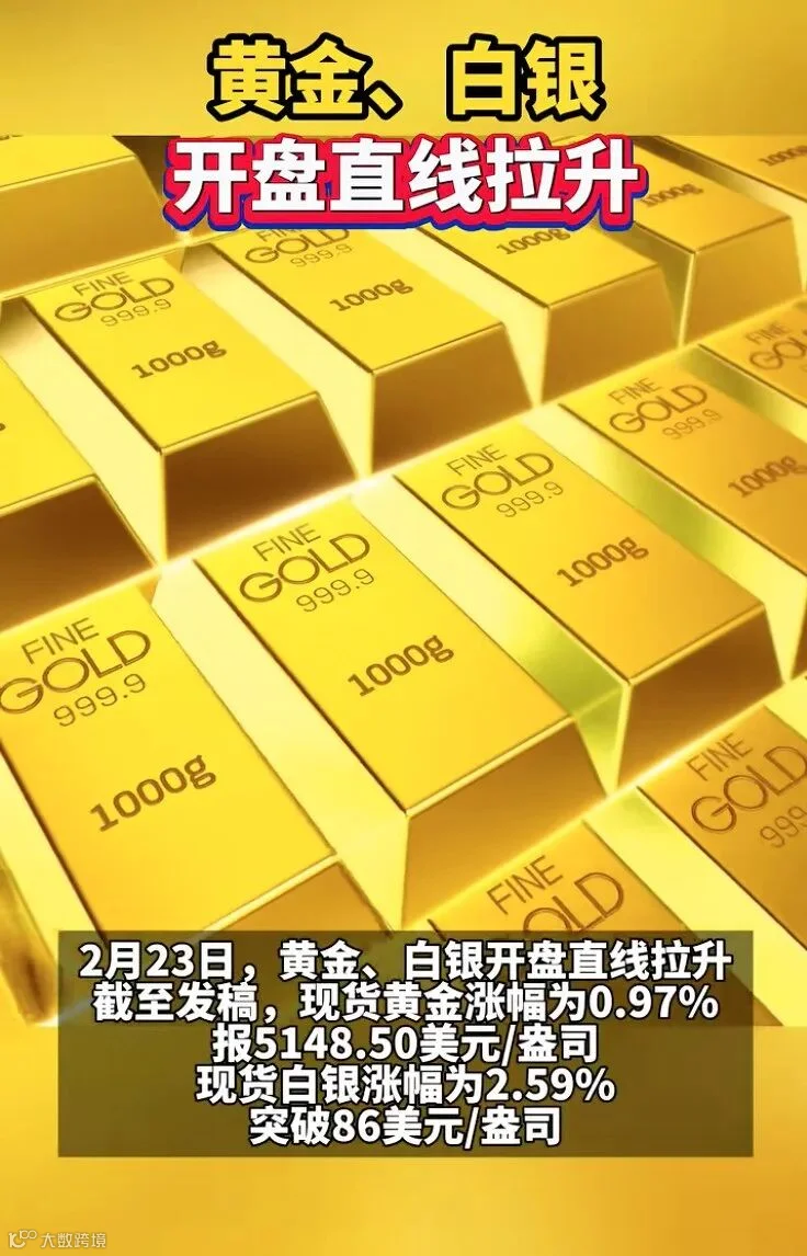 当地时间23日,市场进一步消化特朗普政府宣布的新一轮关税政策以及美国上周五公布的经济数据。投资者担心,在经济增长已经大幅放缓的背景下,新的关税政策将使得美国经济前景更加不明朗,叠加美伊谈判、俄乌和谈仍存变数,贵金属市场的避险买盘操作大幅增加,国际金价和银价在23日亚洲交易时段显著上涨,国际金价逼近5200美元/盎司整数关口。