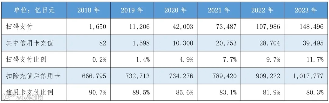 可能是由于经济产业省觉得这个数字,从源头来看是信用卡充值到扫码支付的,所以为了避免重复计算,把信用卡充值算作信用卡交易,同时在扫码支付中把这一金额给扣除了。