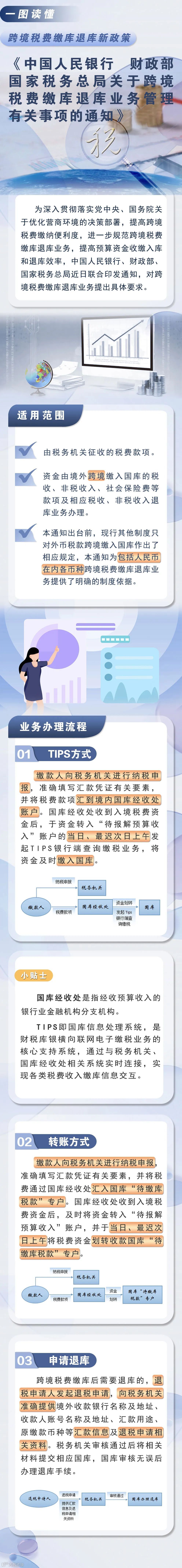 一、缴款人将由税务机关负责征收的税收、非税收入、社会保险费等各项税费款项(以下统称税费)跨境缴入中华人民共和国国家金库(以下简称国库)及相应税收、非税收入退库业务办理,依据本通知执行。