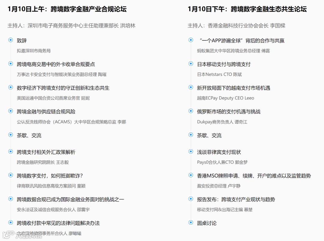 2024年1月10日,移动支付网、出海记以《“合”而不同,共谋新生》将在深圳举办【2024跨境数字金融产业合规与共生大会】,届时银行卡清算机构、银行、支付机构、海内外支付服务商、金融科技企业、外贸企业等跨境金融产业代表将与会,探讨产业合规与合作。