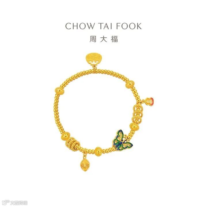 除了五帝钱盘缠手串,一条金重18克的传承蝴蝶手链,目前天猫售价为40600元,相当于2250元/克,根据相关消息,这轮涨价后将上调至50800元,相当于2815元/克。