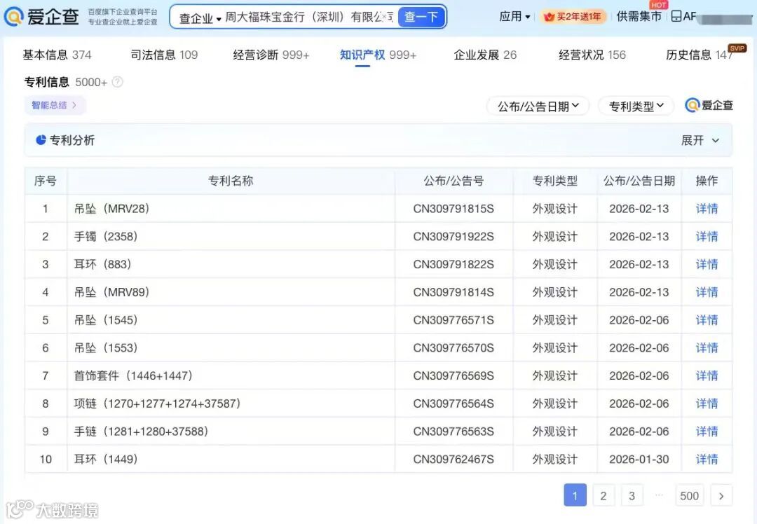 爱企查App显示,周大福关联公司周大福珠宝金行(深圳)有限公司成立于2002年4月,法定代表人为黄绍基,注册资本5亿美元,经营范围包括生产经营以铂金及其他贵金属、各种宝石、珍珠、翡翠、晶石、黄金、白银为材料的饰品、钟表、工艺品等,由周大福珠宝金行有限公司全资持股。