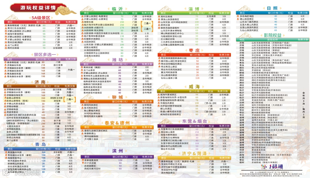 注:目前“好客山东一码通”多数景区可当天预约,但仍有部分景区需要提前一天预约。若未提前预约景区,由此产生的无法入园等风险由个人承担。“好客山东一码通”免费范围,以预订时景区说明为准。