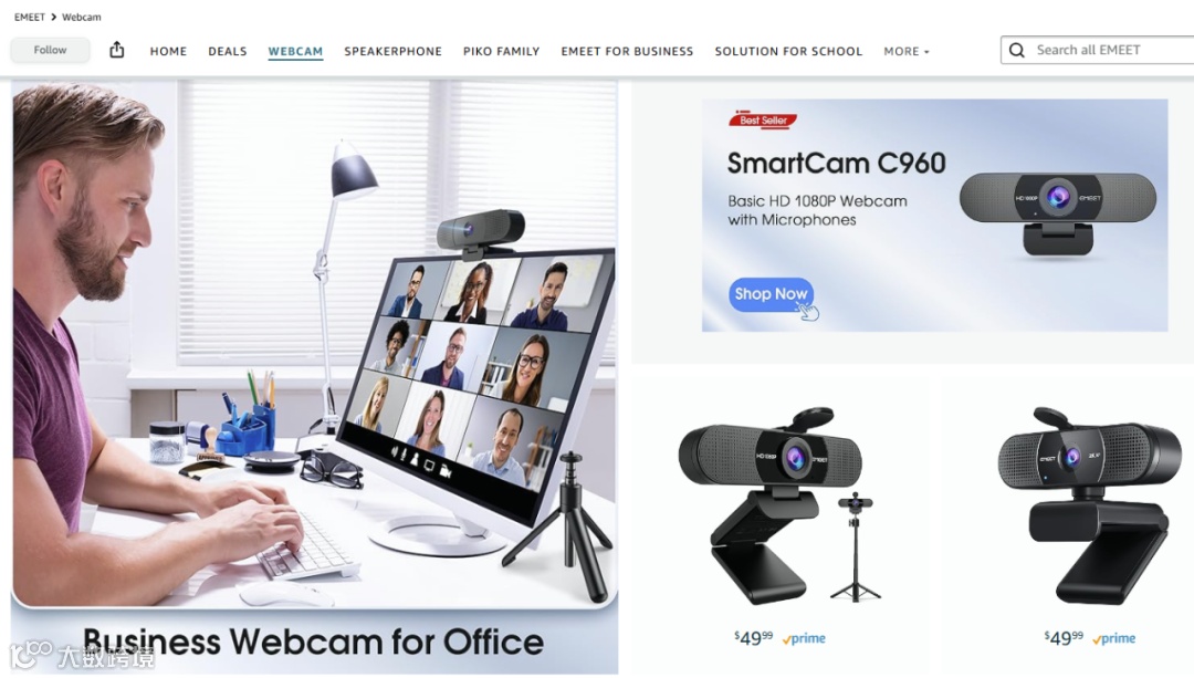 2017年以亚马逊为首站,主营网络摄像头等音频会议产品,迅速跻身办公设备头部品牌。