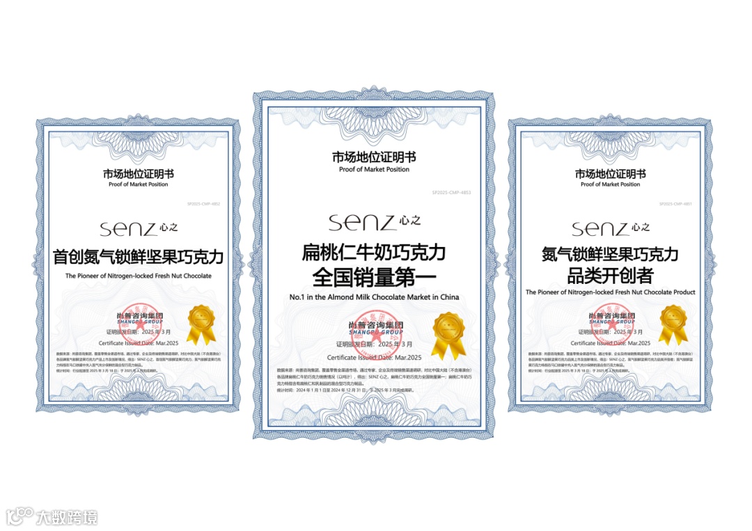 当尚普咨询集团的认证报告最终揭晓,心之巧克力迎来了品牌的高光时刻——扁桃仁巧克力“小巧罐”不仅斩获“全国销量第一”的桂冠,更凭借首创的氮气锁鲜技术赢得“行业开创者”的双重认证。