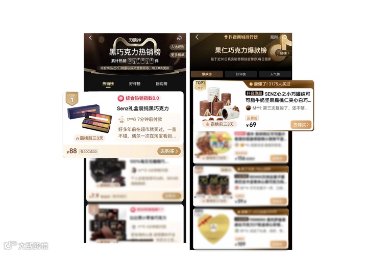 根据公开销售数据显示,心之巧克力旗下“情绪魔盒”系列黑巧和扁桃仁巧克力“小巧罐”多次登顶天猫、抖音等电商平台品类销量榜首。