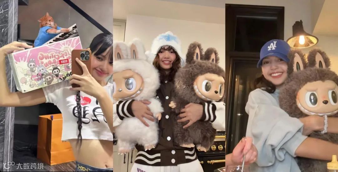 但更重要的是,它吸引了一众明星为它带货!贝克汉姆把女儿送的Labubu玩偶挂在背包上,成为私人街拍常客;Blackpink成员Lisa先后发布了多条ins晒图,身上斜跨的是Labubu毛绒挂件、LV包包上是Labubu挂件、手捧的也是Labubu套装,甚至促使泰国公主也将其作为随身配饰;天后歌手蕾哈娜、Dua Lipa也多次带娃出街,引发社交媒体达人模仿潮。Labubu这个IP直接晋升成了全球潮玩顶流IP!