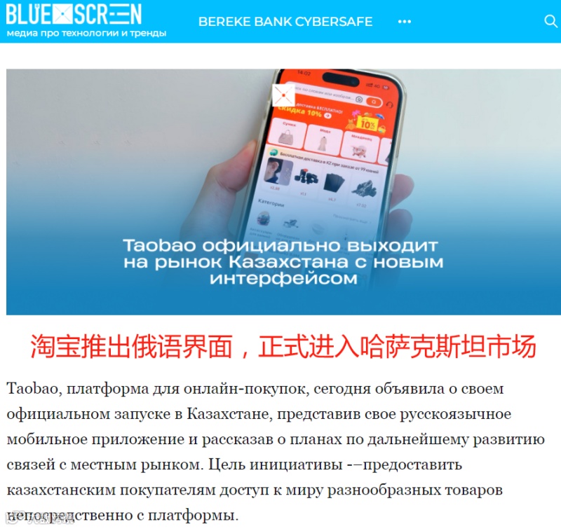日前,阿里巴巴旗下电商平台淘宝宣布正式进入哈萨克斯坦市场,为了更好地适应当地市场,淘宝推出了俄语版移动应用程序,从商品描述到价格显示,都进行了全面本地化。商品价格会自动转换为当地货币坚戈,支付方式也支持Visa、MasterCard和支付宝国际支付,同时,淘宝已完成当地增值税(VAT)注册,确保运营合规。