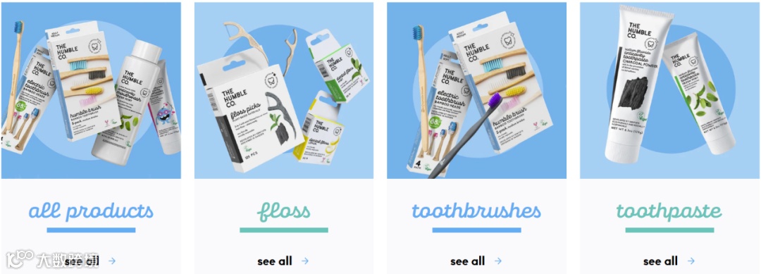 图源:The Humble Co.同年9月,Noel Abdayem创立了The Humble Co.,一家生态友好型口腔护理企业,致力于减少塑料和有害物质使用。旗下生产售卖竹制环保牙刷、舌苔刷、齿间刷、牙线、牙膏、牙膏片、漱口水、可生物降解棉签、口香糖等口腔护理产品。