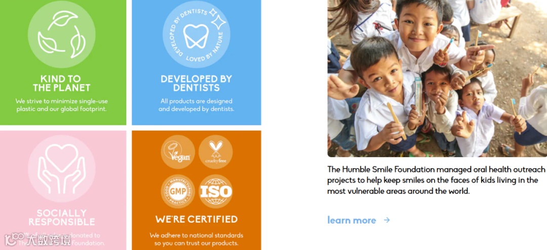 图源:The Humble Co. 与Humble Smile Foundation(赫珀珂微笑基金会)的合作,推行“1% For Smiles”机制——每笔销售收入的1%用于全球口腔健康项目。