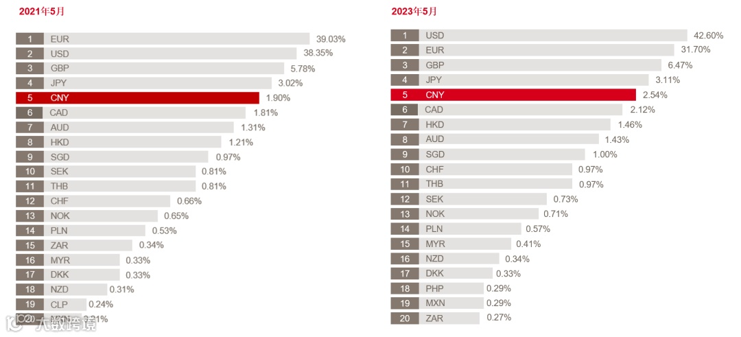 SWIFT:2023年5月人民币全球支付占比2.54%,略有增长