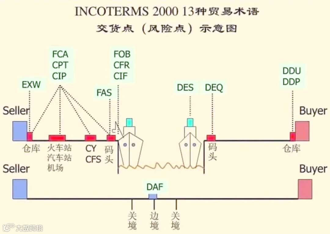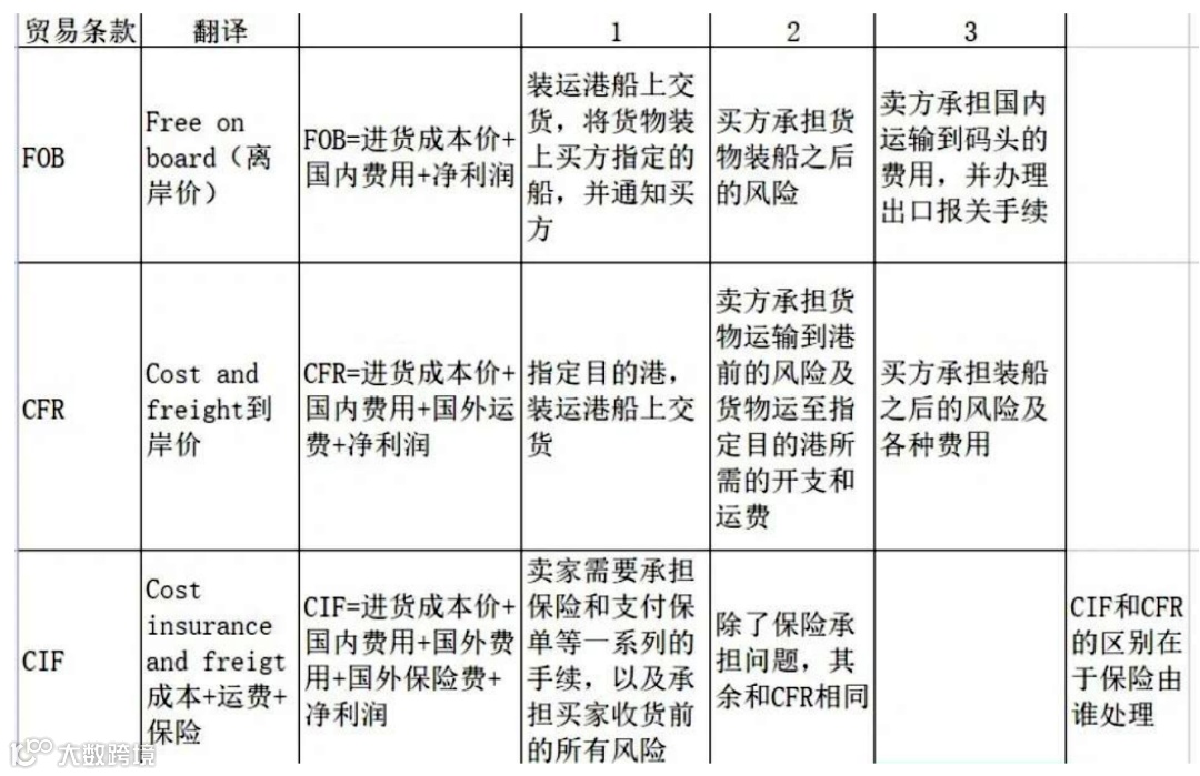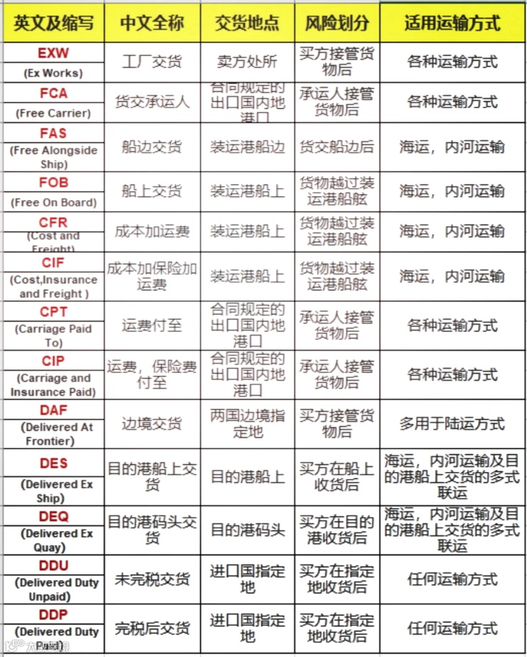 下面是常见的一些贸易术语对比图: