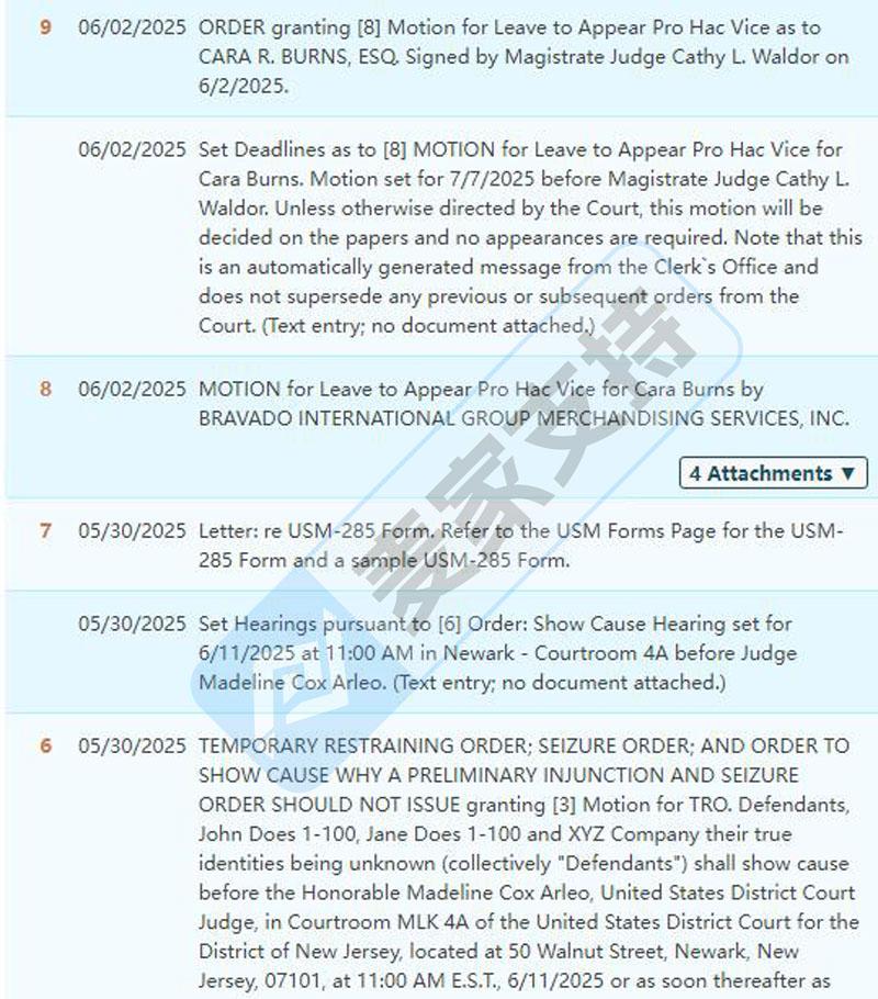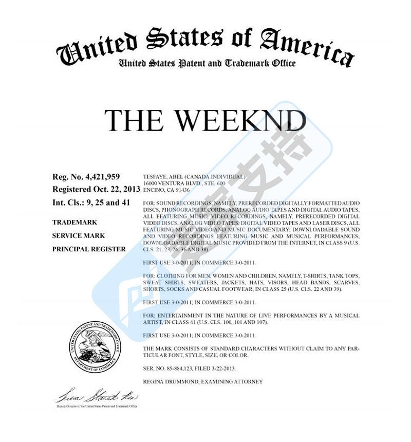 本案是Stevens & Lee代理美国音乐品牌管理公司Bravado 在新泽西地区发起的一起商标维权案件,涉案商标为:The Weeknd,美国注册商标号为:4421959,涵盖025服装、041娱乐服务以及009录音制品等品类,跨境卖家需注意排查,未经授权使用,则会面临TRO冻结风险。目前从该案件公布信息来看,预计最少有100个店铺涉案,跨境卖家应速速排查下架!