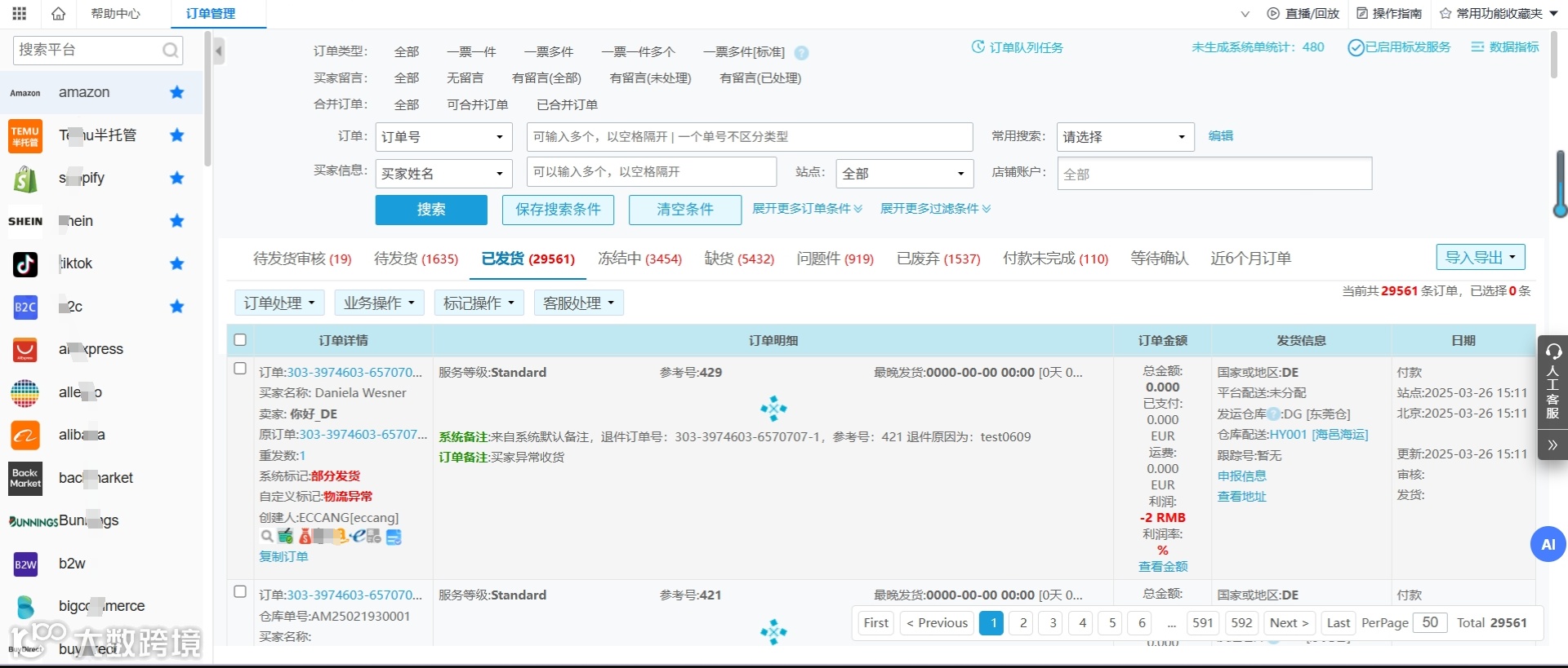 易仓ERP自动拉取和处理沃尔玛、亚马逊等60+平台订单,统一操作界面;通过比价算法匹配最优发货渠道,节省履约成本20%以上。