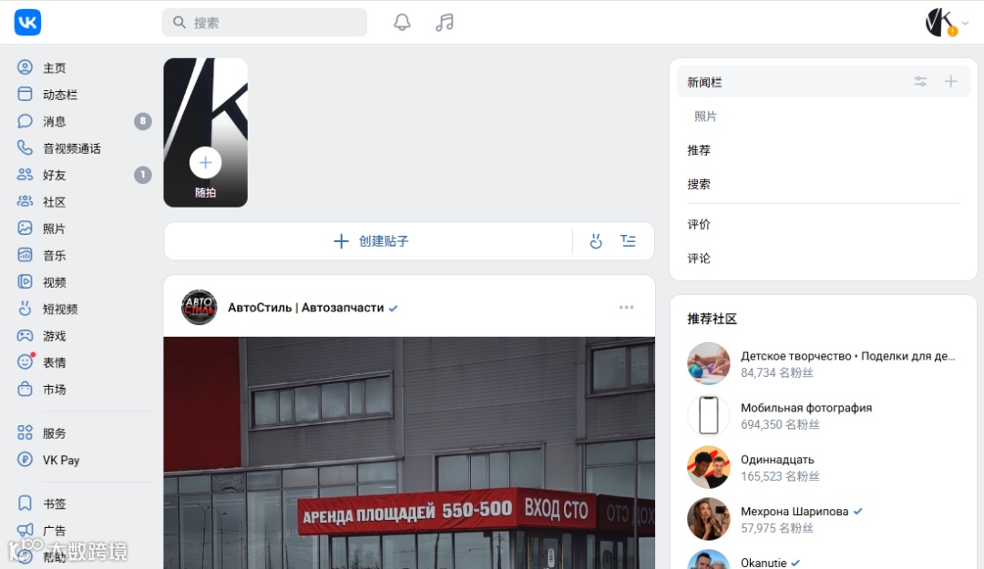 vk的功能也比较多,基本上社媒该有的内容也都有,比如说视频、照片、文章、音乐等等基本都是有的,是开发中亚五国不可错过的社媒营销平台。