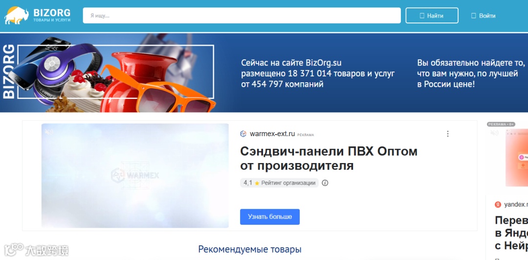 这是一个俄语B2B平台,涵盖中亚市场,拥有45万+企业信息。也有比较详细的产品类别分类,搜索的话也是可以按照产品关键词去搜索的。