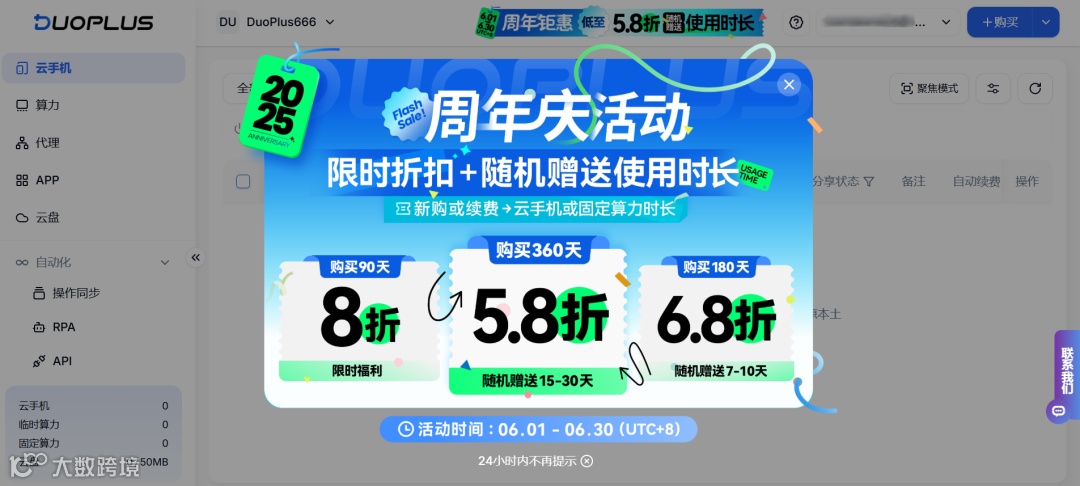 DuoPlus云手机一周年狂欢钜惠活动来袭!