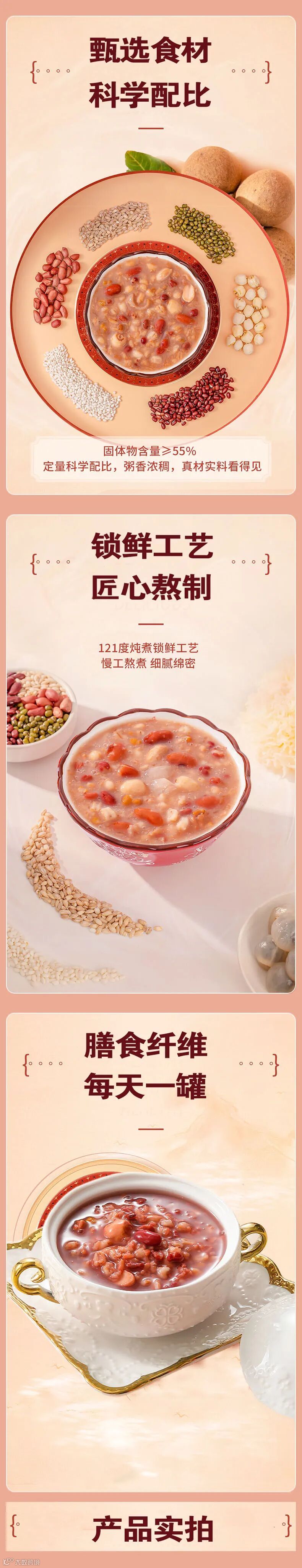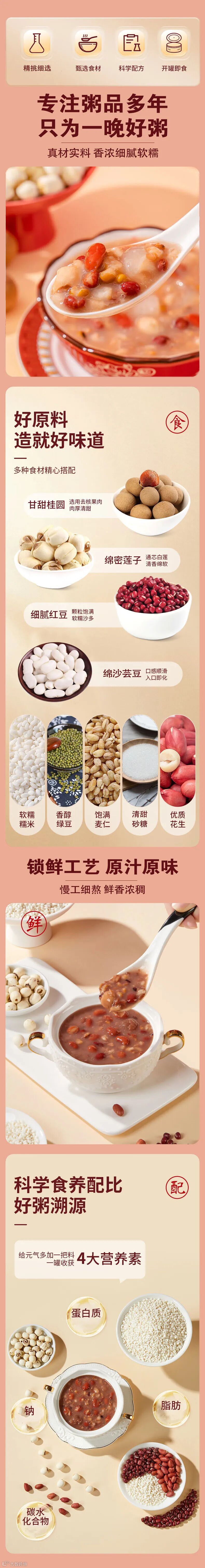 打开罐子您会惊喜地发现:饱满的桂圆肉、粉糯的莲子、软糯的红豆、清甜的绿豆、Q弹的麦仁、香脆的花生、绵密的芸豆、晶莹的糯米—整整八种优质谷物看得见!这些来自优质产区的食材经过科学配比,既保留了天然谷香,又让口感层次更加丰富。