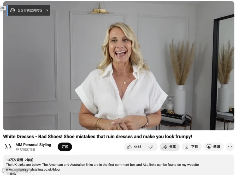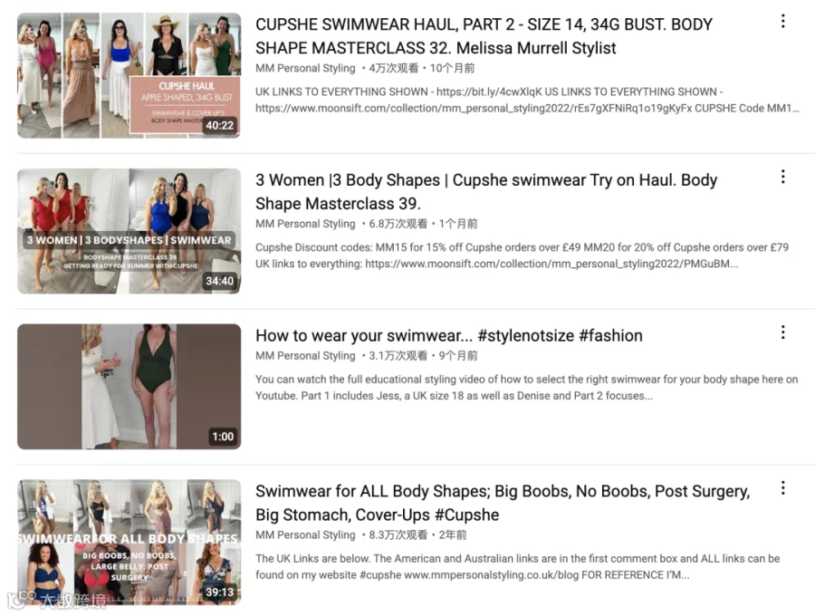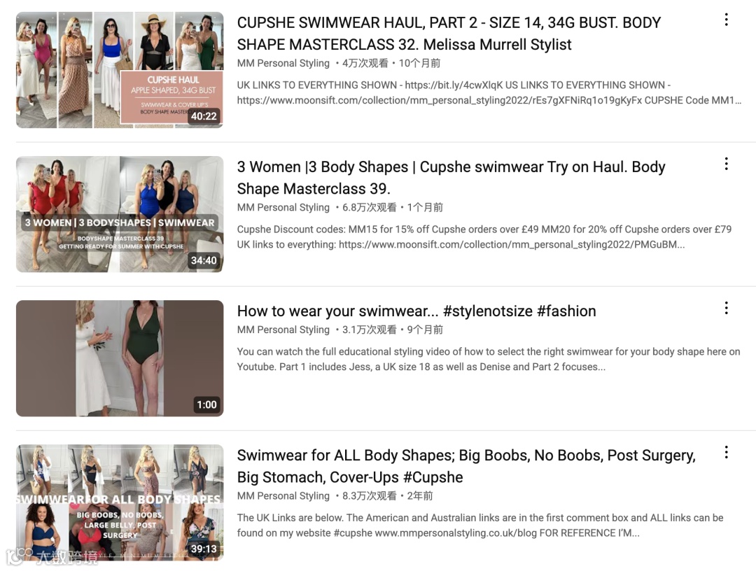 其中,YouTube上的形象顾问创作者MM Personal Styling成为Cupshe海外推广中的重要合作伙伴。她以个人形象设计和时尚搭配为核心内容,致力于帮助观众提升穿衣品味、建立自信气质。她的视频不仅涵盖穿搭技巧、色彩搭配、配饰使用等实用建议,更强调通过服装表达个性与自我认同,深受20至40岁女性用户的喜爱。