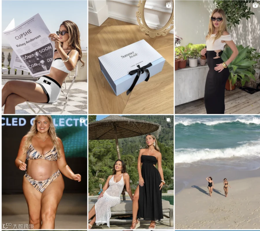 在Facebook和Instagram上,Cupshe则采用图文结合的方式,分享穿搭和沙滩美照,并邀请时尚博主进行独特搭配,凸显产品设计亮点,吸引用户关注并促成购买。
