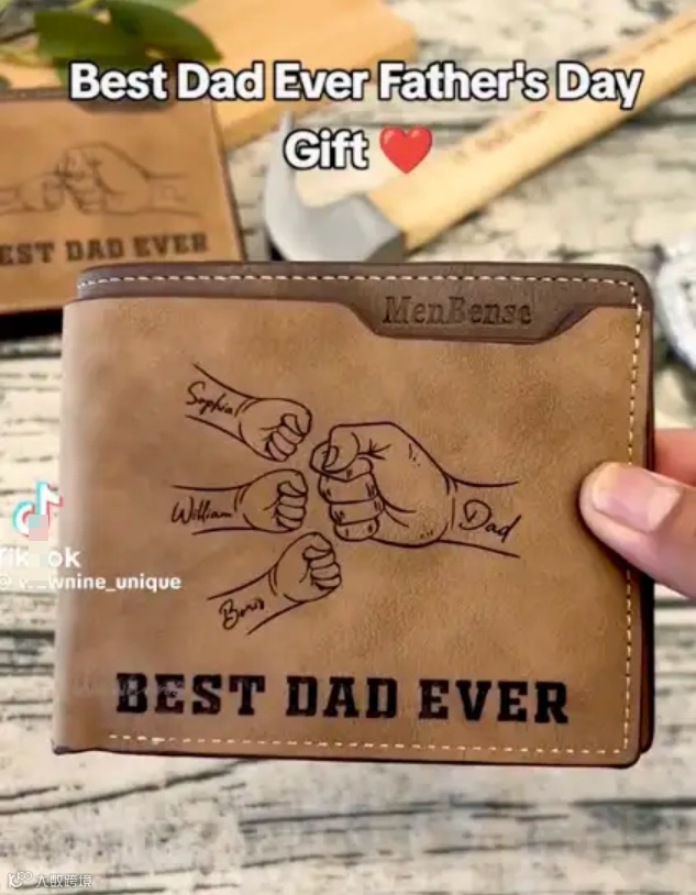 不得不提的是,父亲节最经典的礼物之一就是男士钱包。印有孩子、家庭等代表性元素的定制化钱包能为实用的日常单品增添精致气息,增加其作为礼物的价值感。