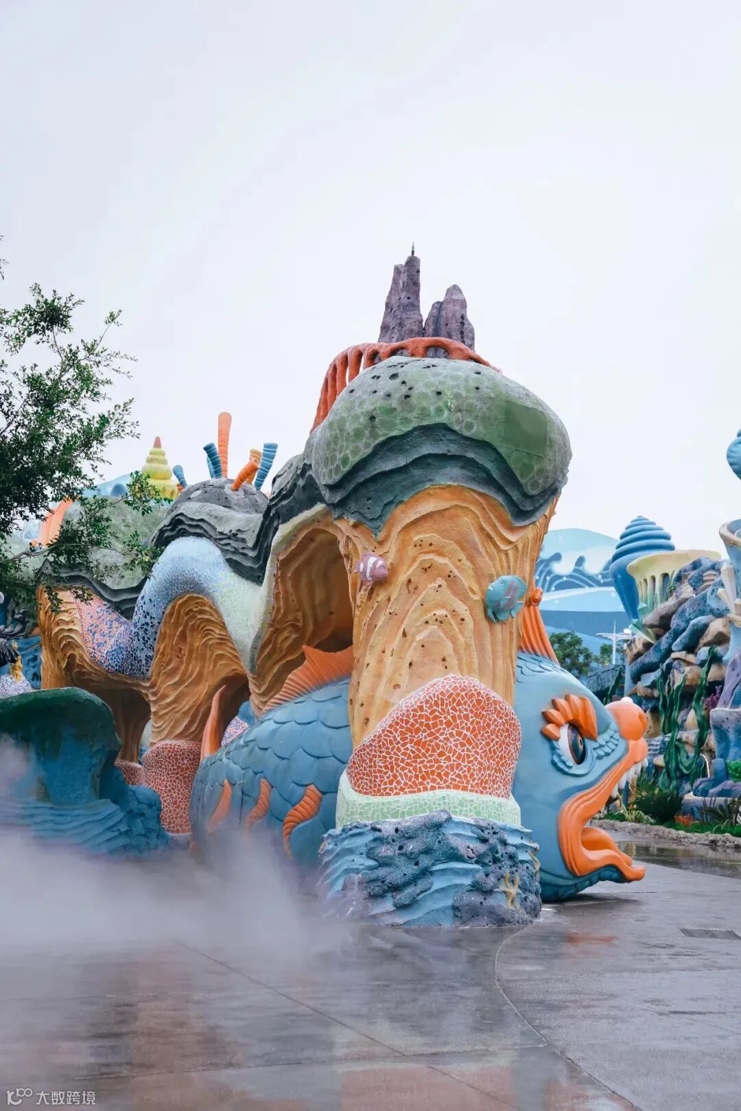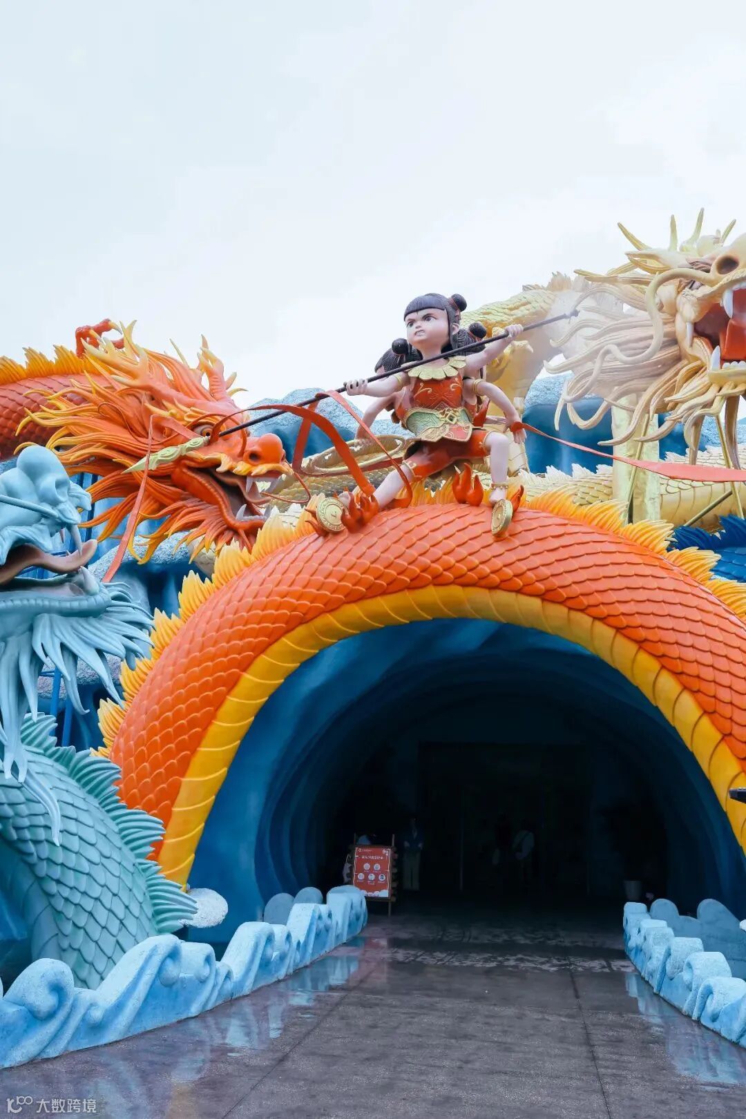 入口处龙王喷吐“仙气”,烟雾缭绕,瞬间增强代入感。结合实景特效与动态轨道技术,还原哪吒与龙族激烈对决的震撼场面。