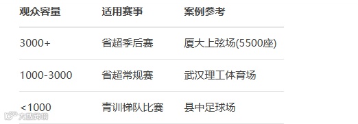 | 高校球场 | 0.5-2万 | 3-5万 | 1万 | ≤8万 |