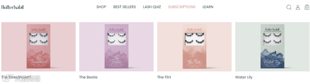 图源:FlutterHabitFlutterHabit将睫毛分为The Sweetheart®、The Bestie、The Flirt、Water Lily等多个系列,多样化睫毛风格,满足消费者多元审美与多样化情景佩戴需求。