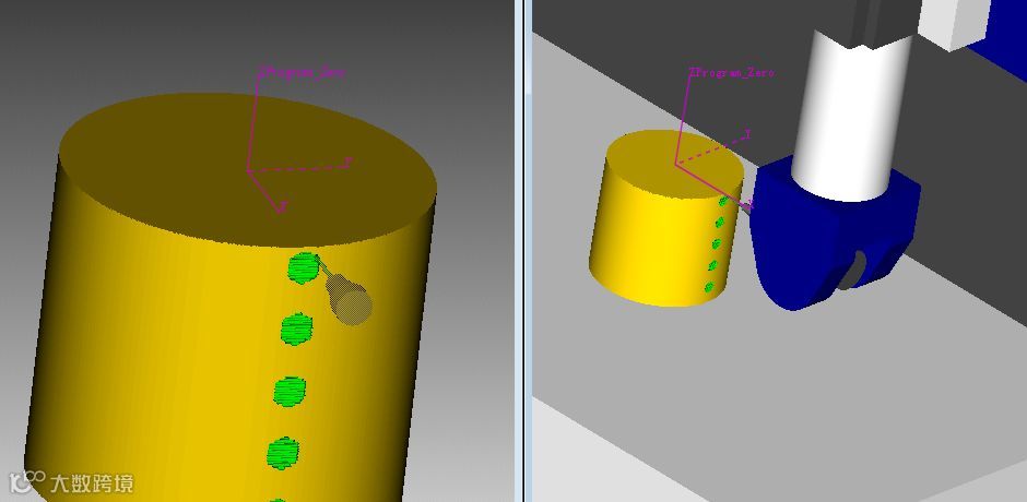通过AROT指令实现坐标系变换,可将端面轮廓便捷转换为柱面轮廓,并完成仿真验证。图2为原始坐标系状态,图3为旋转后仿真结果。