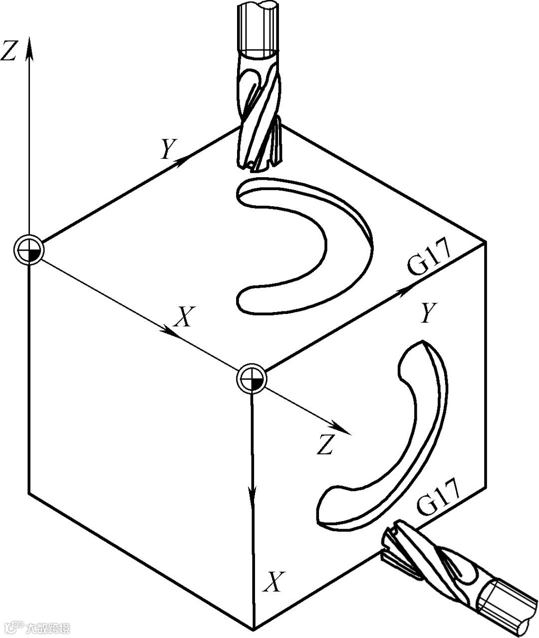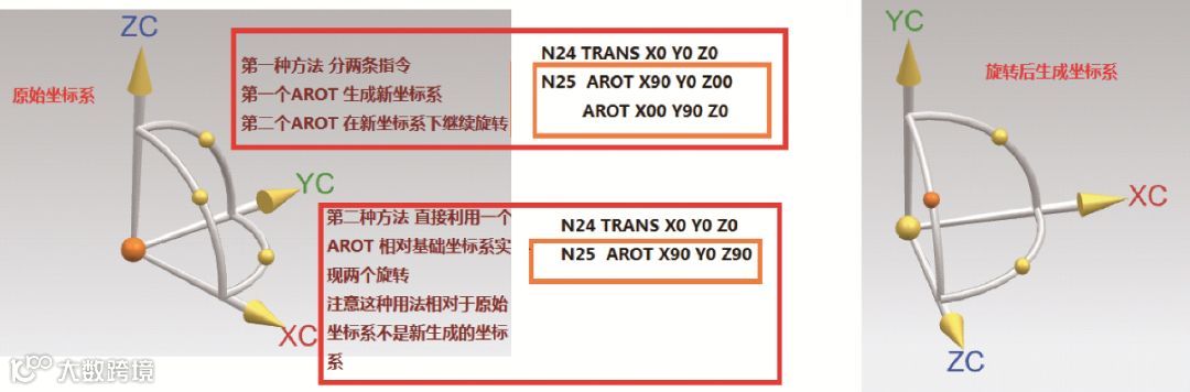 指令格式如下: PROC ROT_Z(REAL DEPTH) DEF REAL Z_DEPTH_VAL=… ROT(AROT) X…Y…Z… ROT(AROT) RPL=… 其中,PROC用于定义程序参数传递变量,DEF用于定义全局变量;ROT表示在原始坐标系下进行旋转,AROT为叠加旋转指令,可在已旋转的坐标系基础上继续旋转;RPL=...设定平面旋转角度。二、坐标系旋转与方向