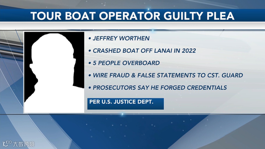 援引夏威夷即時新聞:2022年,一艘夏威夷遊船在Lanai島附近海域發生事故,造成五人落水。週三(2月4日),該船經營者在聯邦法院承認犯有電信詐欺罪和向美國海岸防衛隊作虛假陳述罪。現年61歲的Jeffrey Worthen住在毛伊島Lahaina地區,他經營一艘小型客船,在Lanai島附近帶遊客進行浮潛之旅。檢方稱,Worthen盜用了一名船長、一名企業主和一名前女友的身份訊息,偽造聯邦證件,以此獲得工作機會。