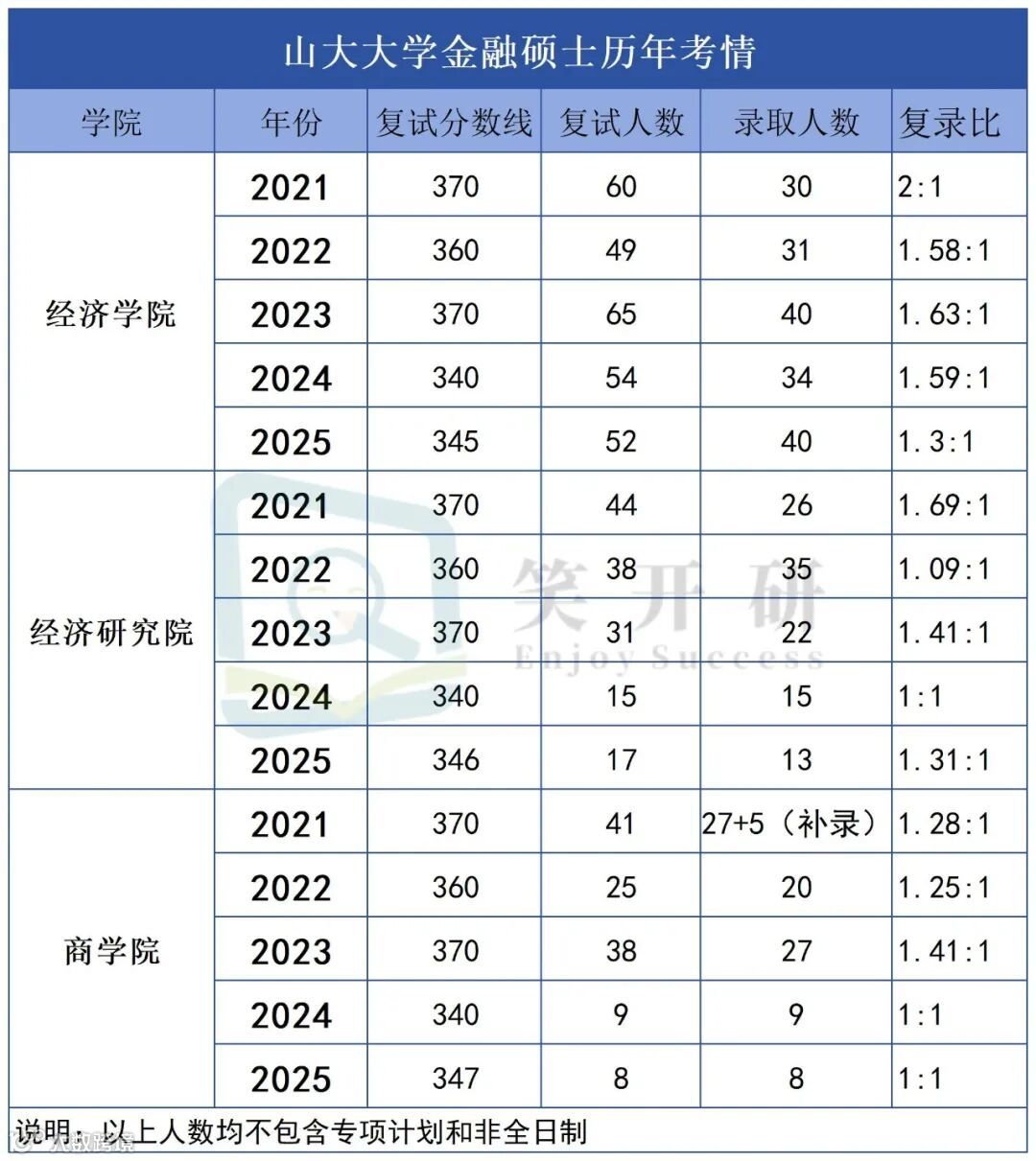 近几年招生人数有减少趋势,最近两年招生人数降为十几个人。24考研等比例复试,但是25考研复试线比经济学院高一分,346分,进入复试17人,拟录取13人,被刷4人,复录比为1.31。总体复录比与经济学院相差不大,建议备考强度与经济学院持平!