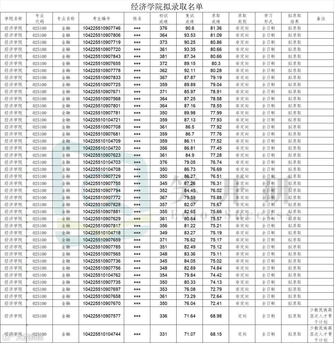 ①经济学院进复试52人+2少民计划,拟录取40+2少民计划