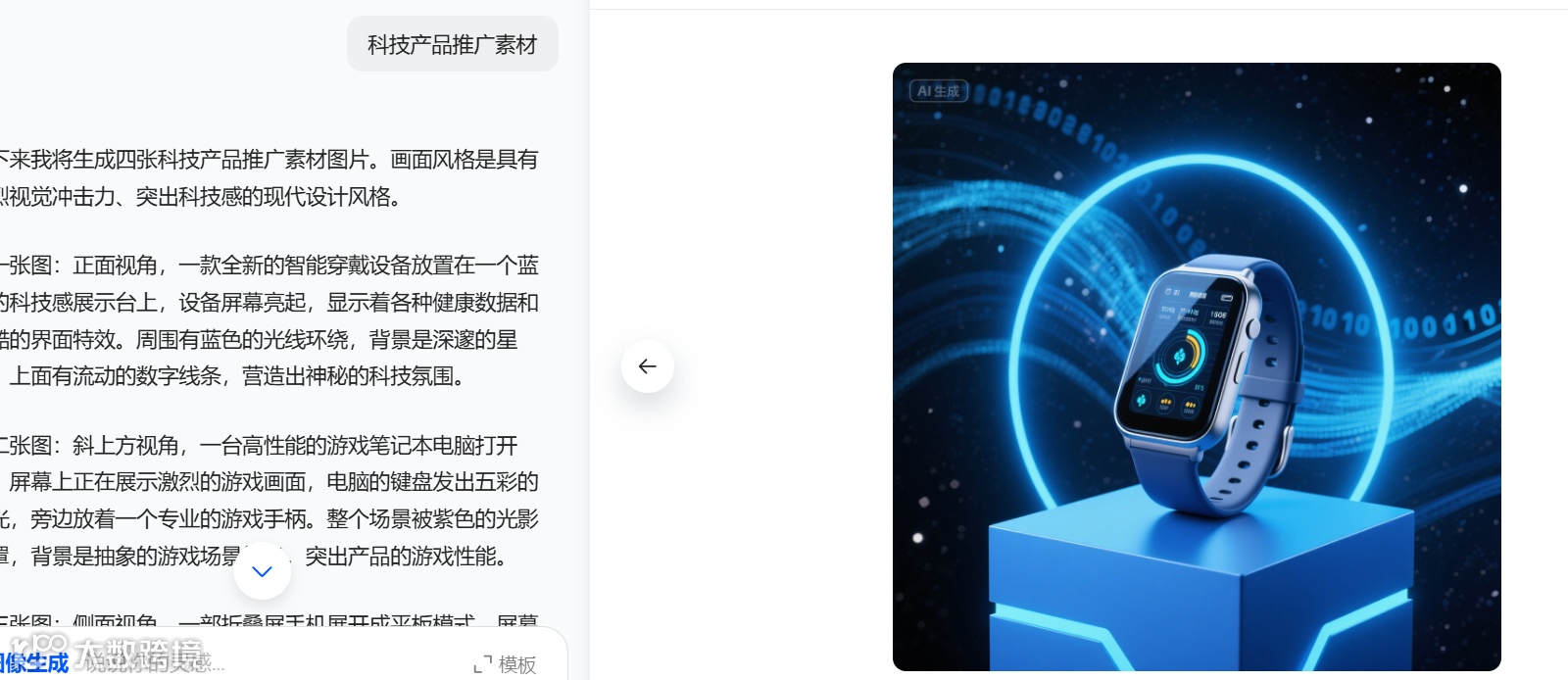 在素材生成方面,输入简单描述,即可快速生成适配的图片、图标等素材。例如输入 “科技产品推广素材”,能得到带有科技感元素、色调协调的图片素材,且素材风格与文案风格可实现协同匹配,提升广告整体协调性 。