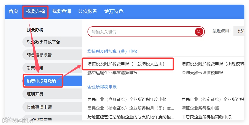 登录电子税务局,在【我要办税】-【税费申报及缴纳】-【增值税及附加税费申报(一般纳税人适用)】功能菜单中进行当期纳税申报。