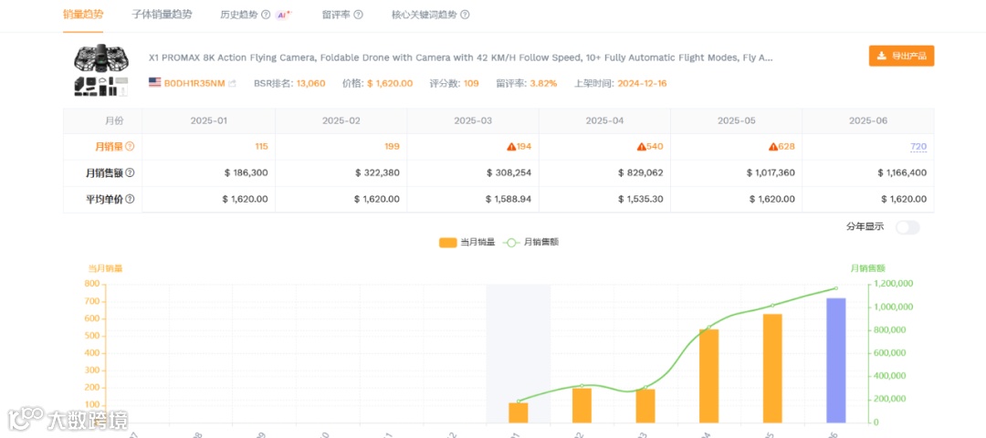 目前X1Promax在亚马逊的单月销售额达到116万美元,动销表现保持稳定。